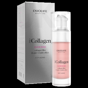 Collagen Elixir Rose to specjalna formuła hydratu kolagenowego z antyoksydantami. Jest przeznaczona do intensywnej pielęgnacji przeciwzmarszczkowej i liftingującej skóry w okolicach oczu, ust i szyi – niezależnie od rodzaju cery. Collagen Elixir Rose to połączenie intensywnego działania naturalnego kolagenu z niezwykłą mocą naturalnych antyoksydantów z czarnej marchwi i alg morskich. Ich działanie pozwala ograniczyć widoczność zmarszczek, cieni i obrzęków. Skóra odzyskuje jędrność, gładkość oraz blask. Linie mimiczne są widocznie spłycone, a skóra doskonale nawilżona, wygładzona i ukojona. Dzięki zawartości naturalnych antyoksydantów Collagen Elixir Rose ma niespotykany świetliście różowy kolor. Kosmetyk stanowi uzupełnienie linii Collagen – stworzonej z myślą o pielęgnacji twarzy.