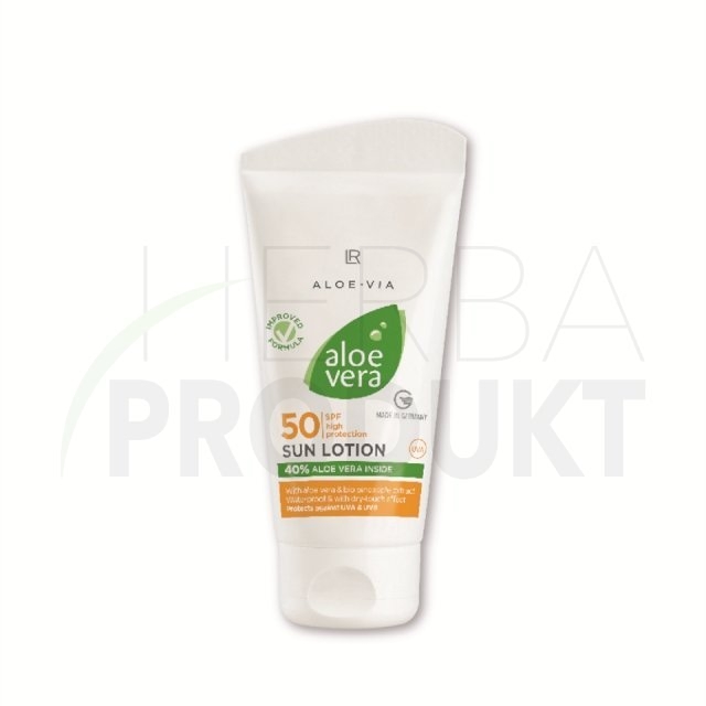 Wysoki faktor ochronny SPF 50. Dla wrażliwych typów skóry. Nie zawiera barwników. Wysoka zawartość Aloe Vera 40%. Nakładać obficie co najmniej 20 minut przed opalaniem.
