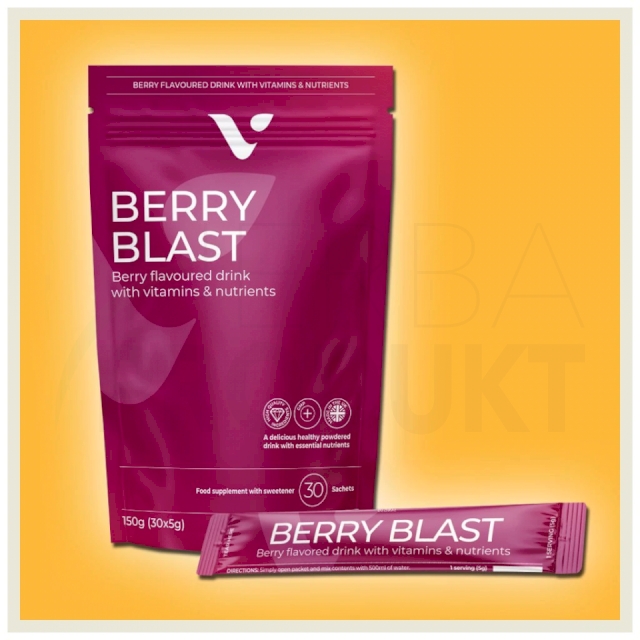 . Dzięki sproszkowanej inulinie, znanemu prebiotykowi, Berry Blast wspomaga wzrost zdrowych bakterii jelitowych, poprawiając zdrowie układu trawiennego i przyczyniając się do ogólnego dobrego samopoczucia.